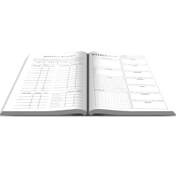THIS PLANNER CONTAINS: MONTHLY CALENDARS, DAILY PLANNER SHEETS, WEEKLY PLANNER SHEETS, ORDER TRACKERS, SAVINGS TRACKERS, SELF CARE GOALS + MUCH MORE.